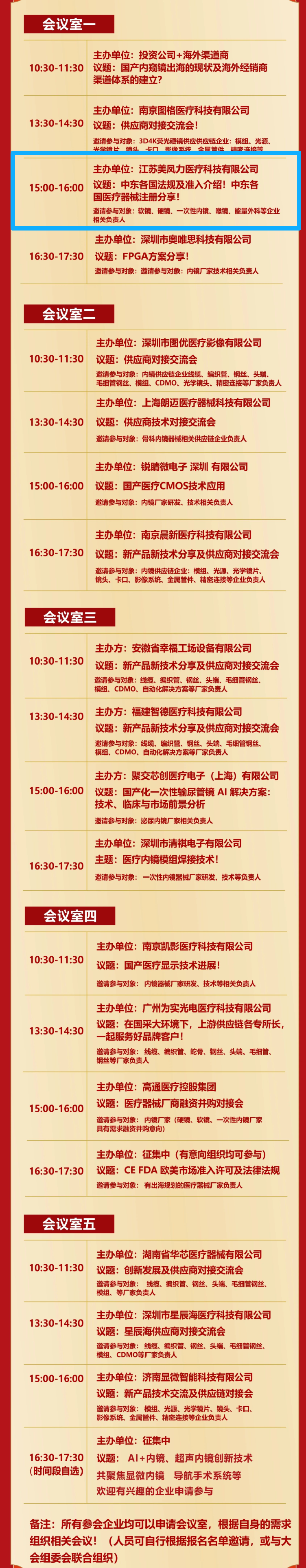 因此,智慧医械网将于年底举办全球医用内窥镜行业年会暨颁奖典礼,年会旨在邀请行业内的投资机构、经销商、医疗器械厂商、配套供应链厂商的董事长、总经理、股东、高管等。共同为产业的健康发展贡献自身的一份力量。同时本次年会设有10 余个会议室,所有参会企业及人员都可以根据自身需求自己或联合平台共同组织研讨会、招商会、投资会、供应链会议、医工融合交流会、产业发展座谈会、海外注册、海外经销商渠道建设等会议,期待您的参与!